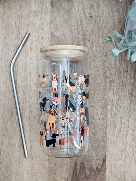 Dogs and Flowers Glass Cup