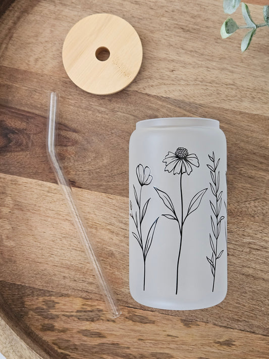 Tall Flower Frosted Glass Cup